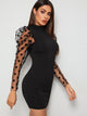Polka Dot Contrast Mesh Sleeve Backless Dress