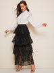 Layered Eyelet Lace Overlay Maxi Skirt